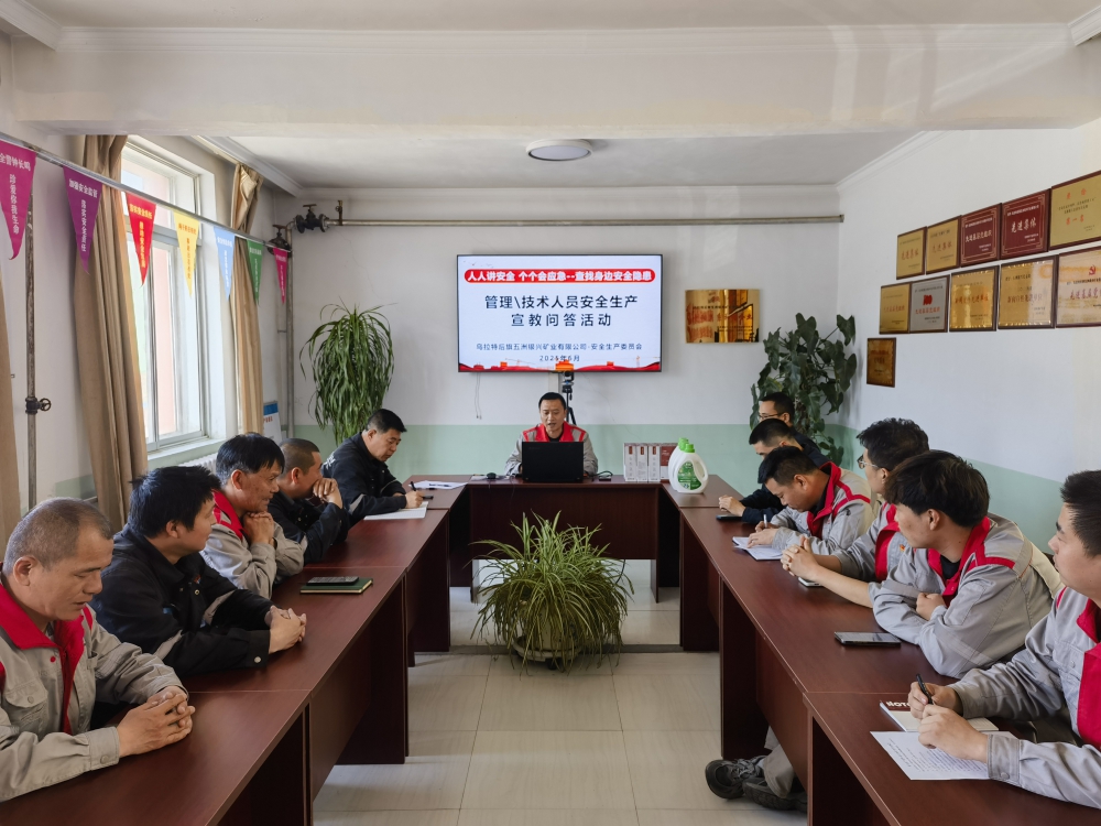 為深入貫徹落實(shí)安全生產(chǎn)月工作部署,強(qiáng)化安全意識(shí),6月12日,陜西銀礦內(nèi)蒙項(xiàng)目部組織開展管理及技術(shù)人員安全生產(chǎn)宣教問答活動(dòng),本次安全生產(chǎn)月主題為:“人人講安全、個(gè)個(gè)會(huì)應(yīng)急——查找身邊安全隱患”。